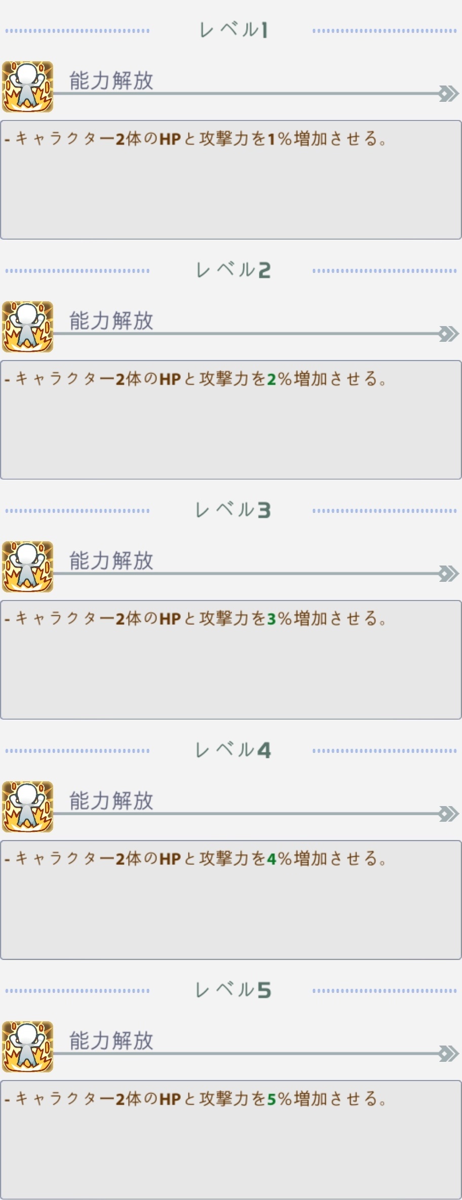 | 4星にランクイン:攻撃力が5%増加する |