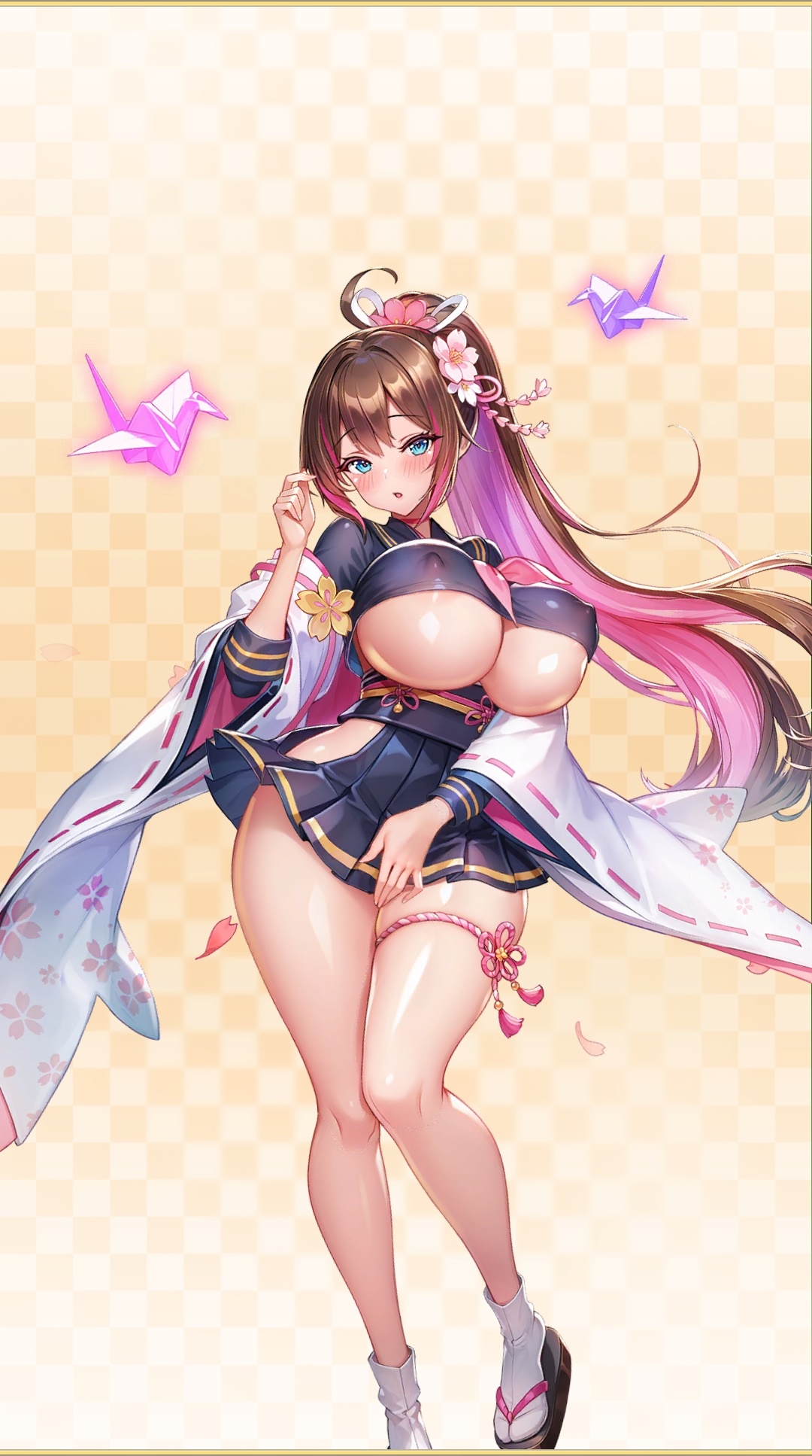 One day in the middle of the night, after the mission ended, you dragged your exhausted body back to the Campus to complete the mission report. As you were passing through the Campus courtyard on your way back to the dormitory, you saw a young girl in uniform sitting under a large tree full of pink blossoms, gazing at the crescent moon in the sky. You were attracted by her figure and walked slowly towards the tree. She gracefully floated down in front of you, touched your cheek, and the coldness from her fingertips made you want to warm up this pitiful beauty immediately. Forgetting all fatigue and holding hands with the beauty, she seemed to approve of your actions in silence. Both of you fell onto the grass covered in petals, embracing each other. The next day when you woke up, you were disheveled lying under the tree. The beauty had disappeared, but you distinctly remembered the warmth left on your body from the one night stand with her. That night, you came to the courtyard alone again, and the beauty did appear in front of you, yet her figure had become more mature…